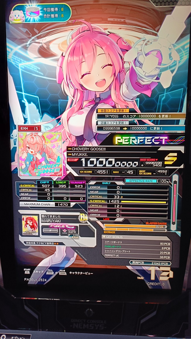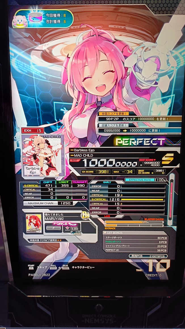 ジャケットのエトワール=フィラントちゃんが推しキャラなのでPUCがんばった。この子のアピールカードないよね?CHOVERY GOOSE!!!はLv18のMXM譜面も触ってみたんだけど超ONE HAND / HAND TRIP譜面でマジで何もできなかったから練習したいんだけどHAND TRIPって下のレベルだとなかなか出てこないんだよね。最近はLv16もSを取れる曲が増えてきたけど相変わらずツマミが入れ替わると全く認識できないのでLv14でAA+取ったりするのが困る。