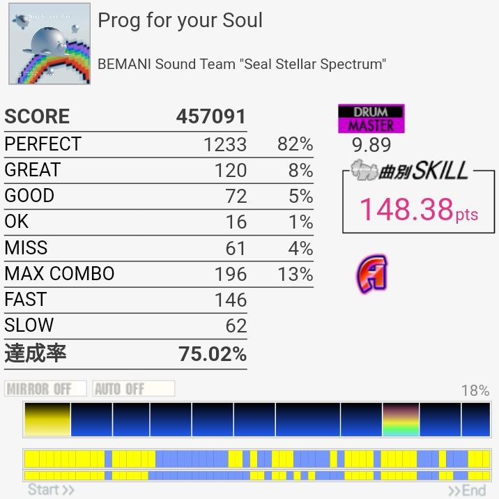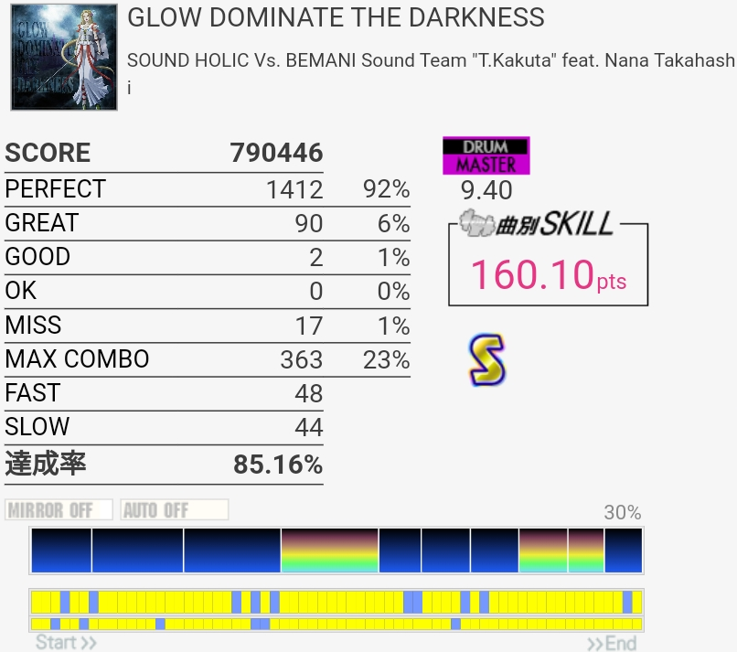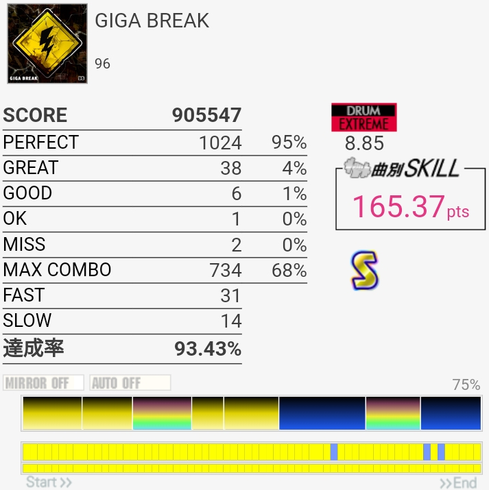 眠すぎていつも以上に何を書こうとしたのか覚えていない……風邪気味だしコンディションが良くなかったかな。GALAXY WAVE稼働したあたりの上達してる感に対して最近は伸び悩んでるけど回数足りないのかなあ。仕事終わったら疲れて寝ちゃうんよ。
