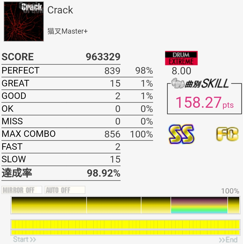 疲れちゃって全然叩けなかったんだけどなぜかFASTに寄ってる。疲れてる時ってだいたいSLOWしか出ないんだけどなあ。