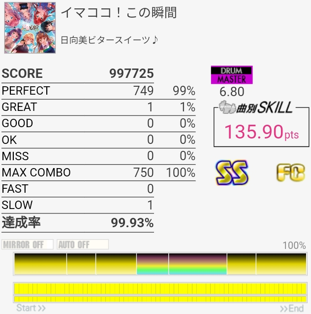 たしかサビ終わりのHHとかいうGREAT出しようのないところで出た。絶対ちゃんと叩いたって!