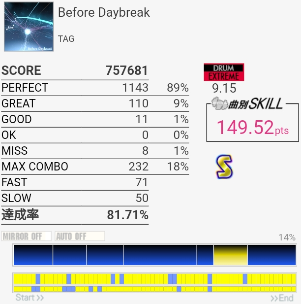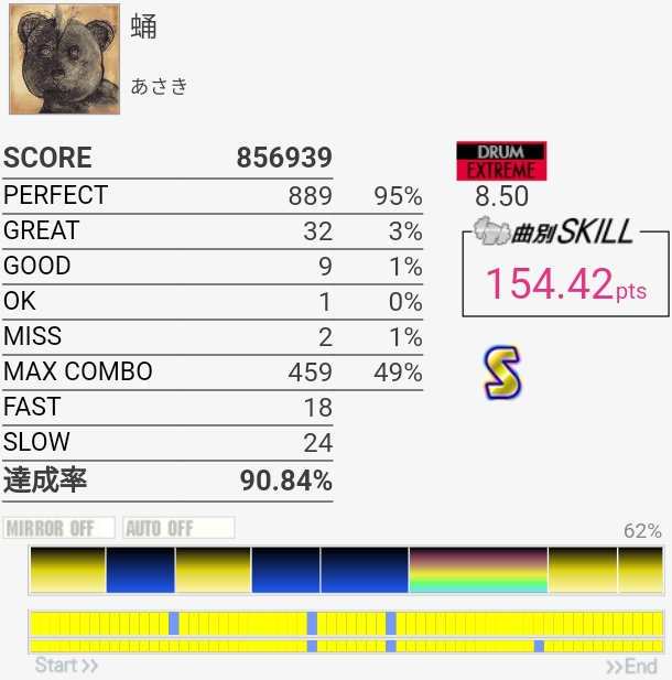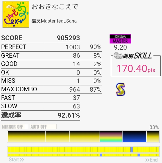 イントロが珍しく繋がって対象入りチャンスと思ったらHHに反発吸収されて持ち上げられなかった。この筐体で頑張るの無駄なのでは?