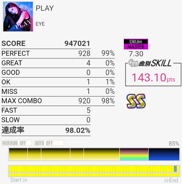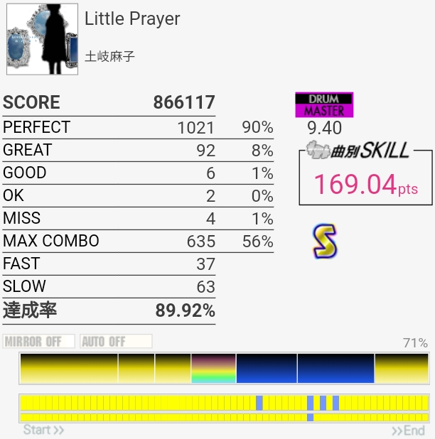 ラストまでGREAT0個でもらったと思ったらFT→LT→FT→LTにびっくりして叩けなかった。油断大敵。