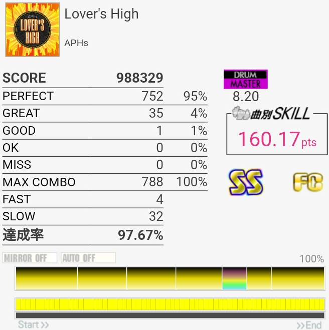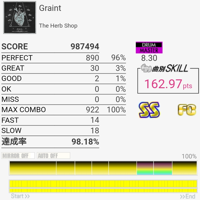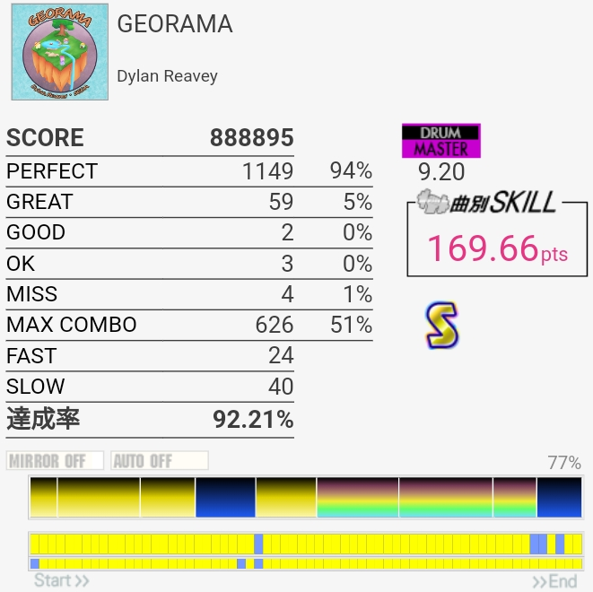 フルコンはできるけどパフェ率が上がらん……なんかSNでめっちゃGREAT出るんだよな。