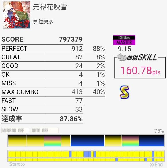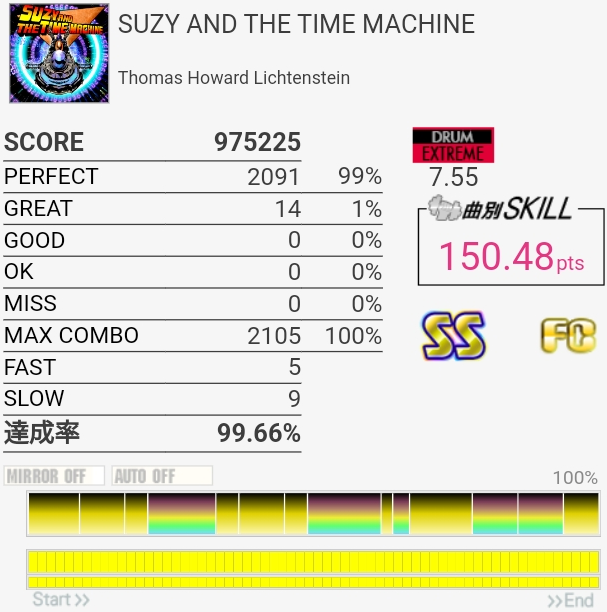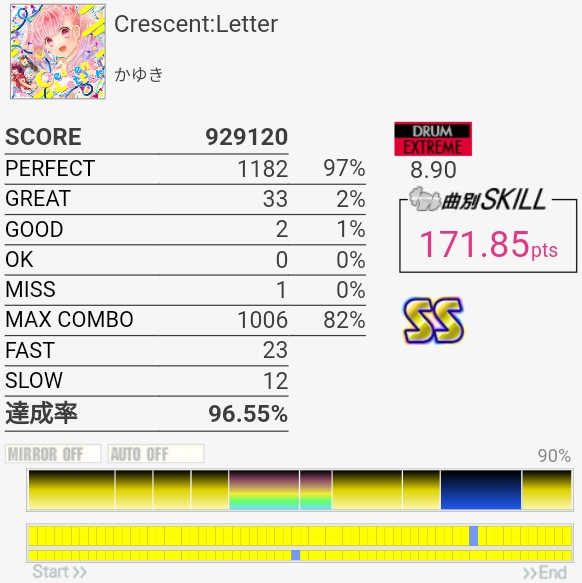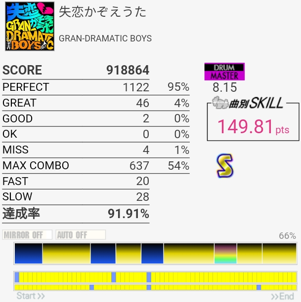 2番のサビまで0個だった。叩く場所がちょっとでもズレると判定がブレるパッドにしてはめちゃくちゃ上手いと思う。