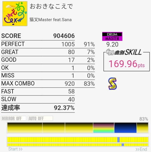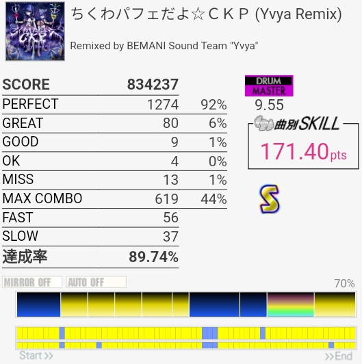 これはどうしても身構えちゃって速めに叩いちゃう。難所が前半にあるから繋がって後半で凡ミスした時のダメージがデカそう。