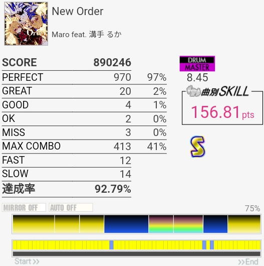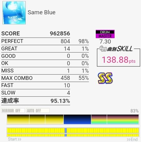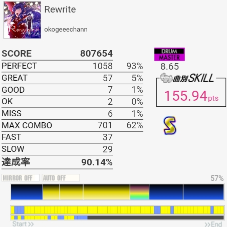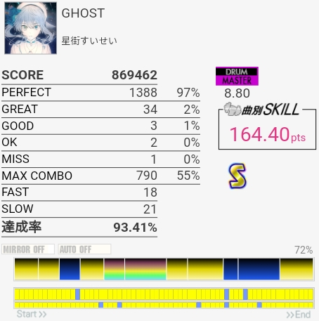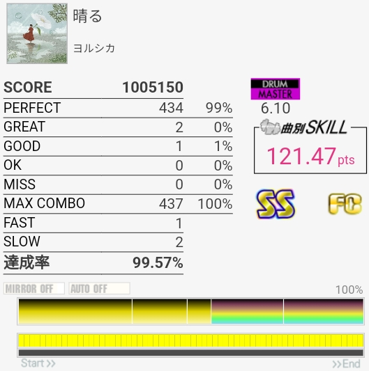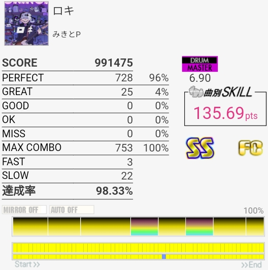 初見は急に左手SN×2が来たのでびっくりして切ってしまった。この程度の譜面で99%出せないとは……。