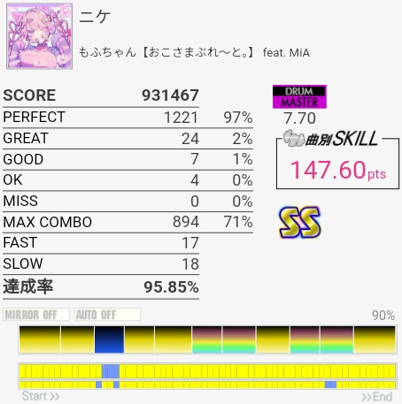 変なフィルばっかりで見た目以上にムズいし所々にある三連符でめっちゃ切る。これ9.00あってもおかしくないと思う。