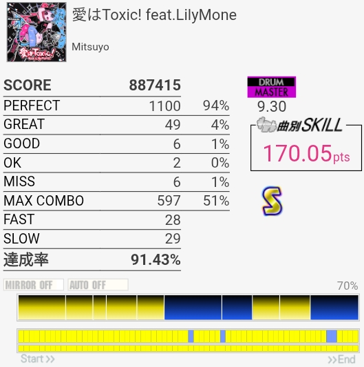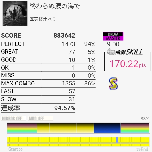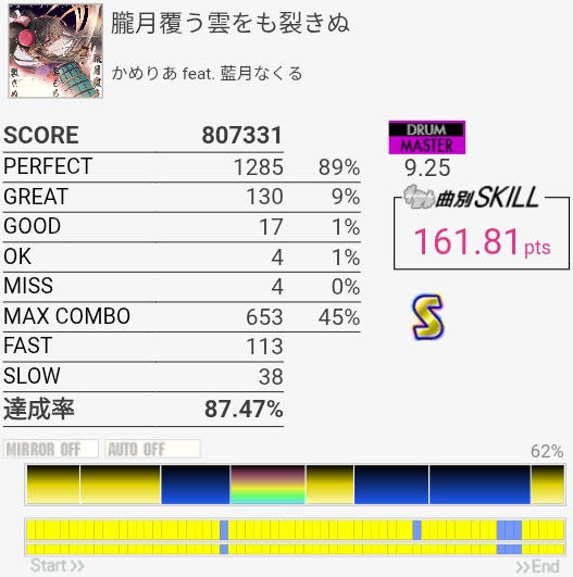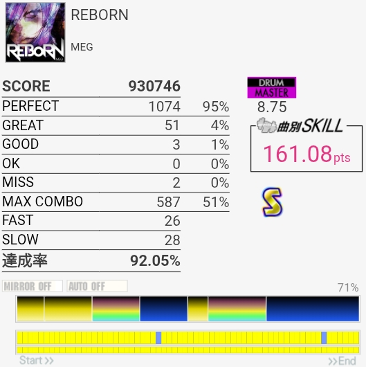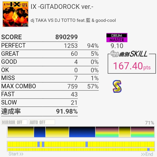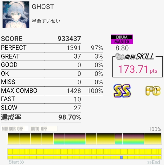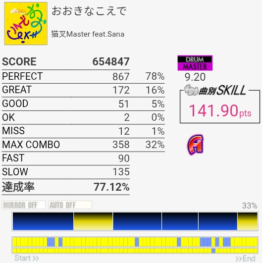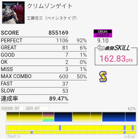三連符両手連打苦手すぎる。そこ以外は判定合ってれば問題ないから腕を上げる意識を持とう。