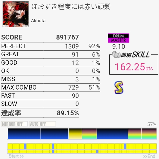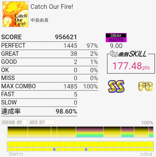 前作がんばってたおかげで譜面けっこう覚えてた。タムの反応がよくなったから後半繋がりやすくなってる。