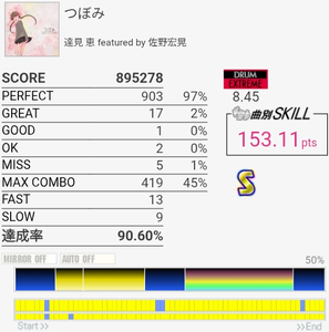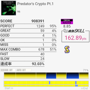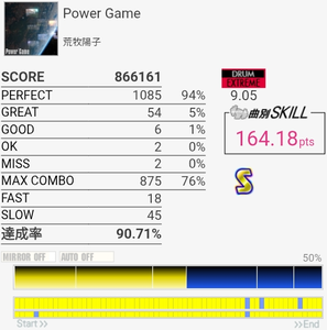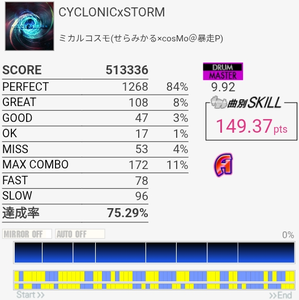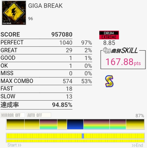 4-4-4-4のところのBPが全部GREATになった。判定どうこうよりペダルと椅子がダメな問題の方が大きいと思う。