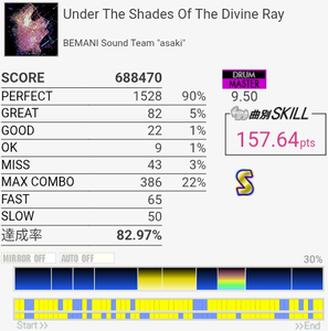 B判定→A判定。これ最初のフレーズちゃんと叩けてればS取れたのでは?