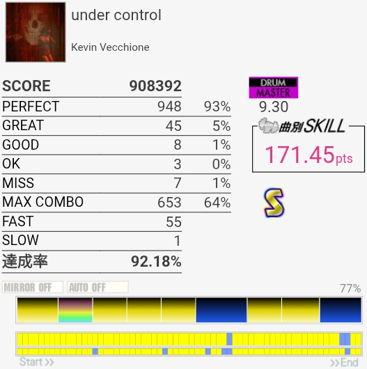 腕が死んでたので道中ボロボロだったけど最後のツーバスだけ全パフェだった。椅子が下がらなきゃ余裕で踏めるんだけどな。