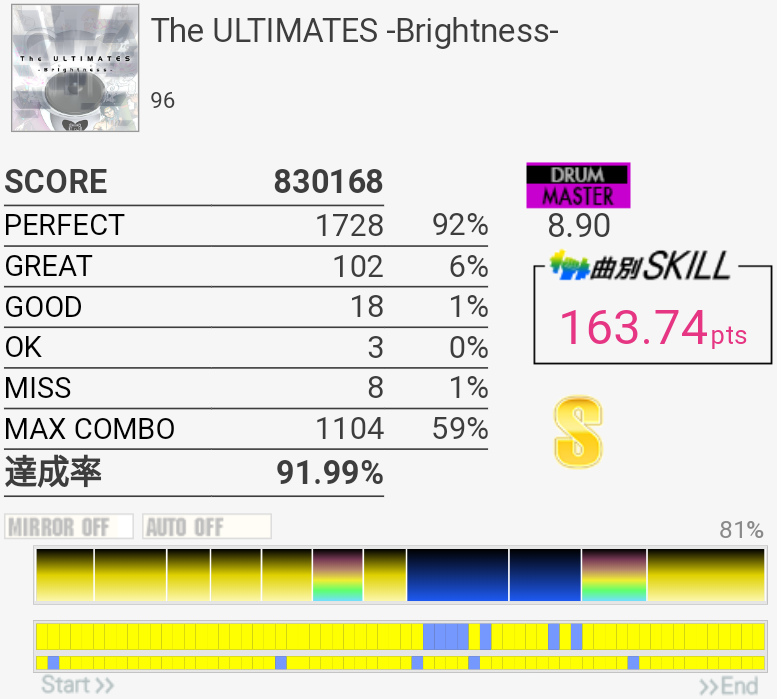 今日は最初の方結構譜面が見えてて調子が良かった。事前にある程度体を動かしておくのはやっぱ必要だな。