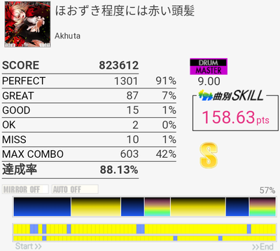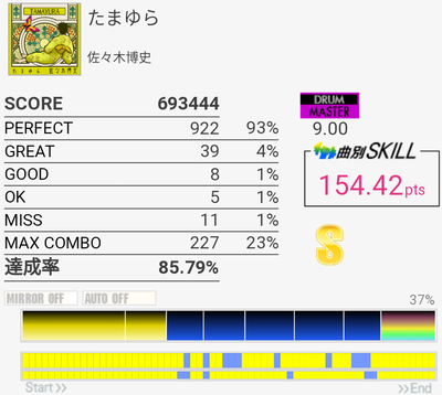 譜面を再確認してブレイクのところはちゃんと叩けた。けどどうでもいいところでミスりすぎる。あとは回数!