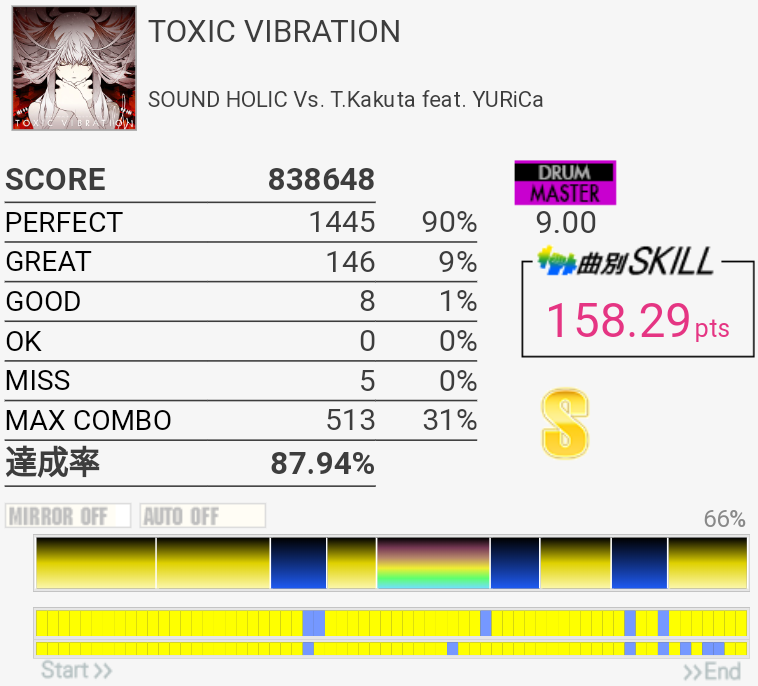 フルコン。クロスで叩いてどこかしらミスる譜面だったのでうれしい。