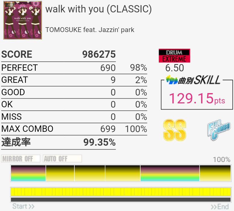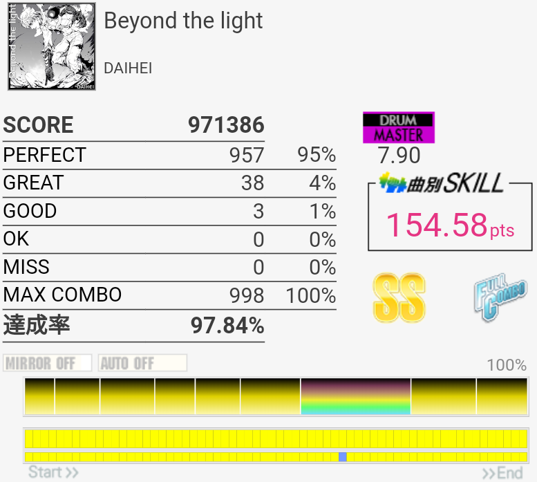 SS取得。Bメロ最初のHH×3をいつも忘れて切ってた。