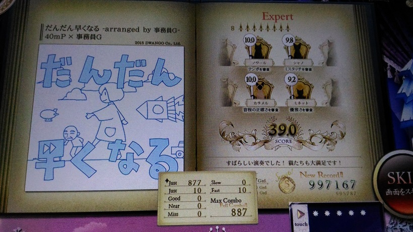 曲が短いので譜面を覚えてピアノ弾きを練習するのがやりやすそうか……?10なら990kでリサイタル90Grd.は狙えるはず。