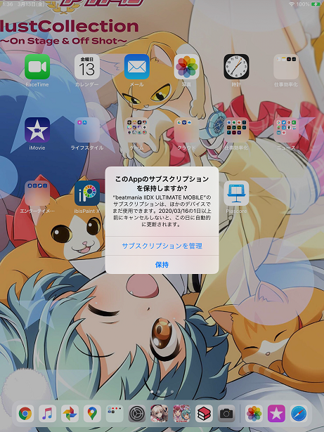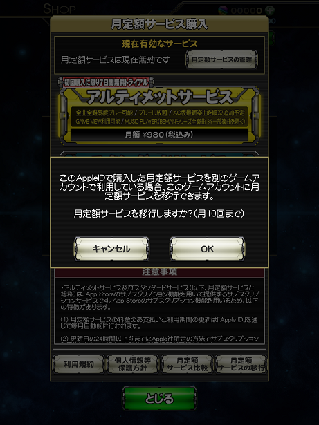 アルティメットサービスなど月定額サービスを利用している場合こんな表示が出ます。下の「保持」を選択。