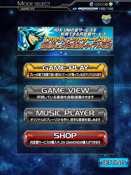 ダウンロードが終わるとメニュー画面へ。月定額サービスに加入していない人はこれで