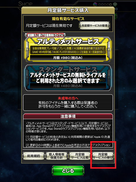 月定額サービスの移行」を選択。