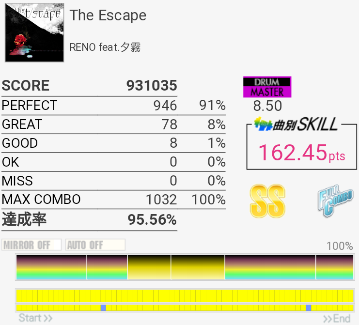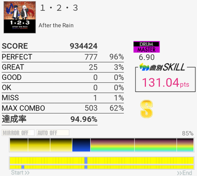 真ん中の三連符のところが繋がってちょい伸び。後半のCY×3地帯も繋がりそうだな。