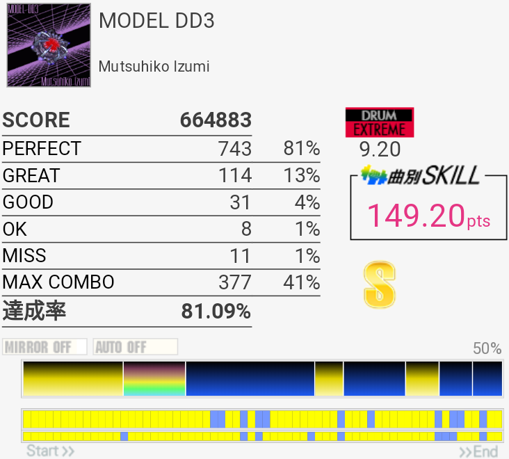 FTに振られないぶんXG譜面よりはちょっと楽かもだけれど逆に叩きづらいところも多くてどっこい。