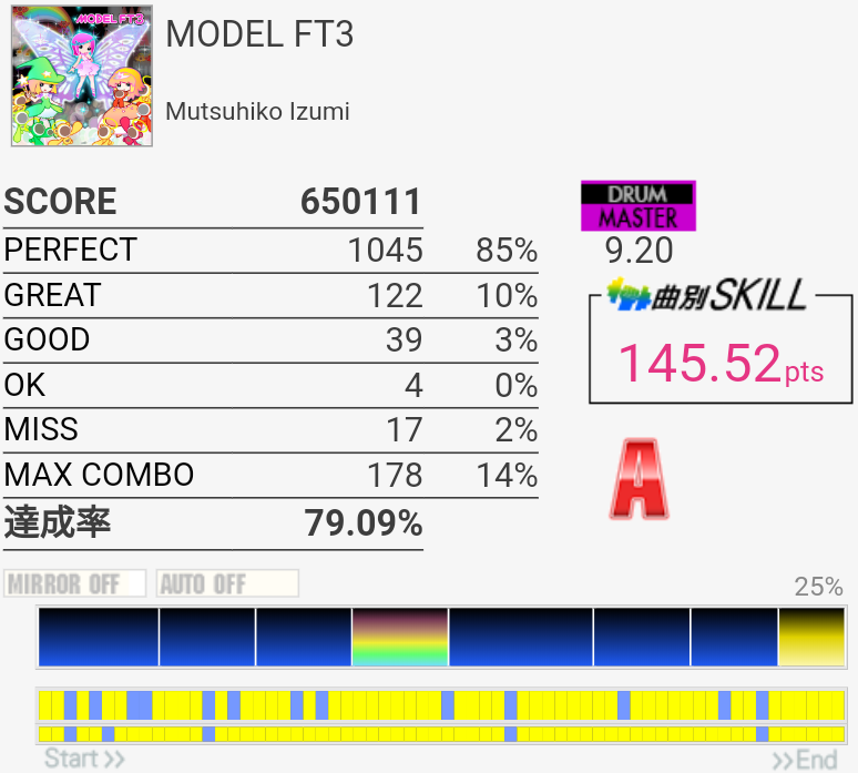 刻みの体力譜面が一番心配だったのだけれど、とりあえずギリギリ叩ききることはできた。前もけっこういっぱいいっぱいだったかな?もう覚えてないんだよな。