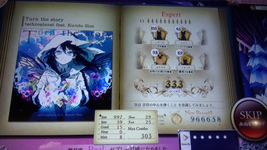 Expertの時点で割とキツい譜面だった。リサイタルばかりやっていて咄嗟のベチャ押しやスライドの反応が遅れているのはいいことなのか悪いことなのか……。