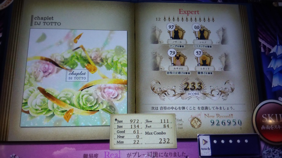 Realは四曲の中では一番良心的か?と思ったら後半難しかった。今回イベントの譜面16分の階段繰り返しみたいなのばっかだなって思ったけどReal2って本来そのくらい難しいもんだったな。
