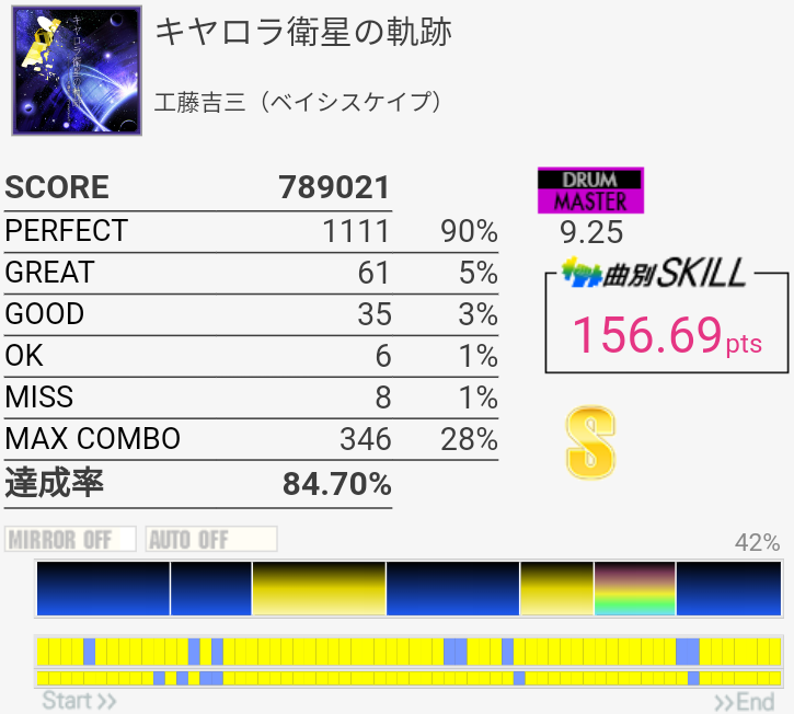 ちょっとリズム掴みづらいけどこれもあからさまな逆詐称だなあ。MASは4フレーズ目だけ8台っぽいけどあとはB→Pに飛ぶのさえちゃんと取れれば150点もらえるし。