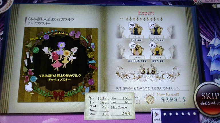 Real譜面の後でカーソル移動忘れて選んじゃったやつ。せっかくなので満点狙ってみたんだけどダメだった。強弱ほんとにシビアだなー。