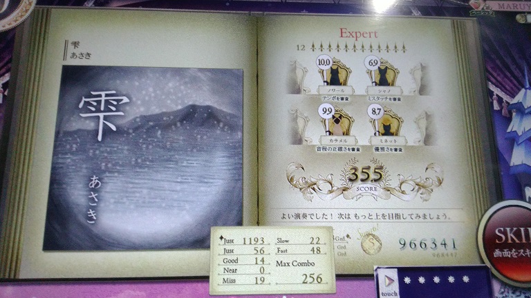 98.56点。これで終わり?って感じになる曲。ノーツ数少ないな。