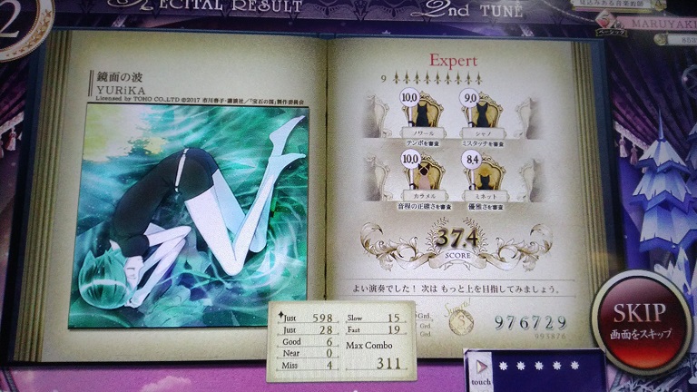 一回やってへたくそだったのでやり直した。おしい!どこで出たのかわからんけどたぶんグリッサンドでしょ。これも良曲良譜面だし消されるのは惜しい。