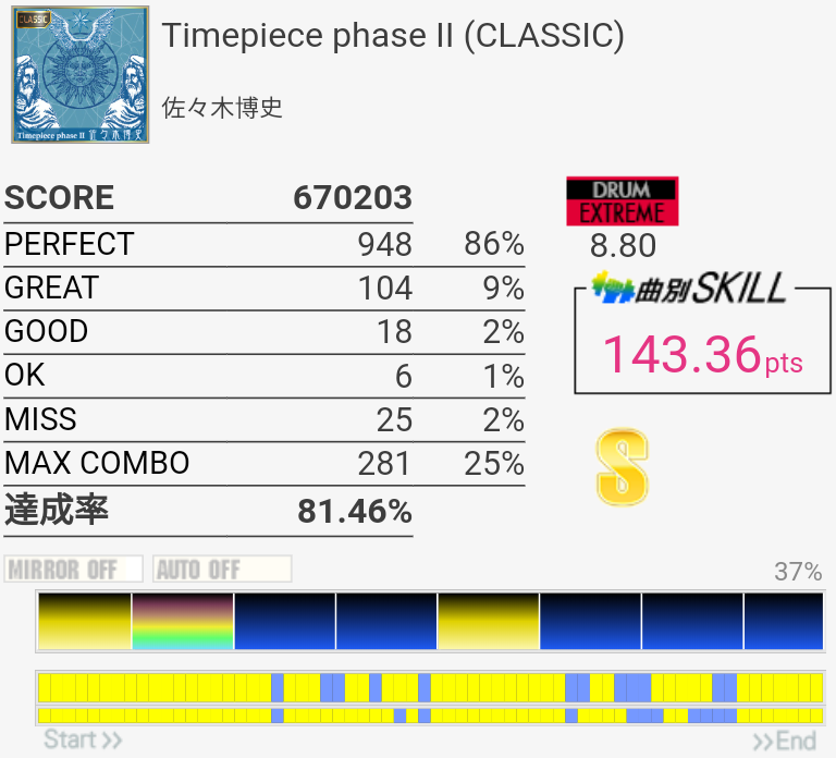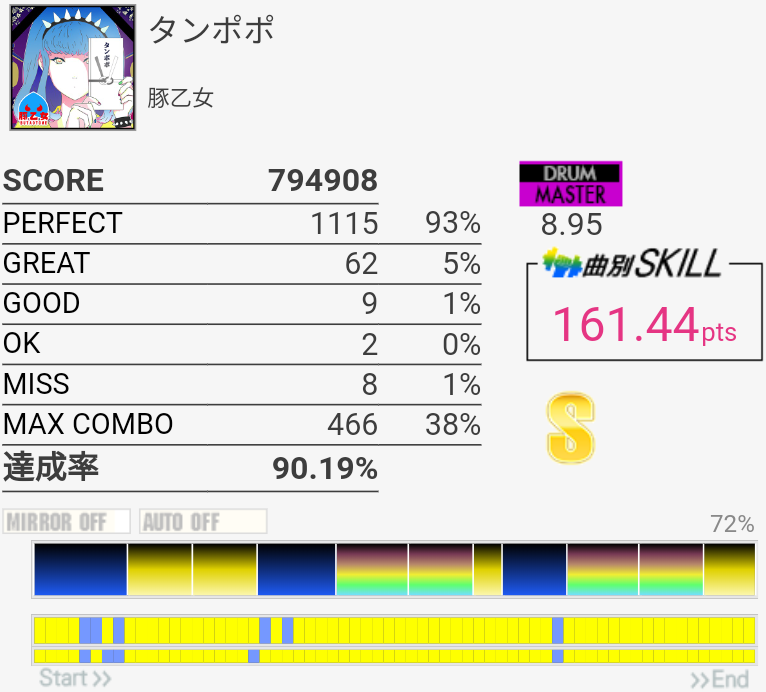 フレーズ的には新記録。三連CYどーしても叩けない。