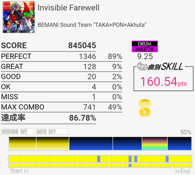 繋がってると思ってたら曲の終盤あたりでなんかグラフ低くね?ってなってああ、切ったんだなって……前半でパフェ率が死ぬ。