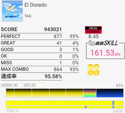 SS取得。イントロアウトロはHH+SN→LCが苦手……あと中盤の2回来るSNがこわい。