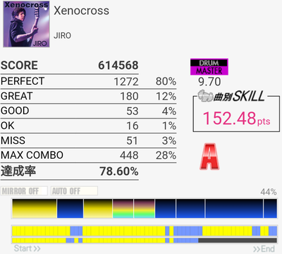 5フレーズ目繋がった!全部GREAT以下だったけど。6フレーズ目で変なミスしちゃったのが悔やまれるなー。