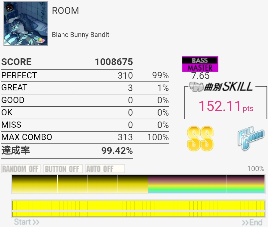 譜面覚えてなかったけどフルコン。GREATが出すぎである。