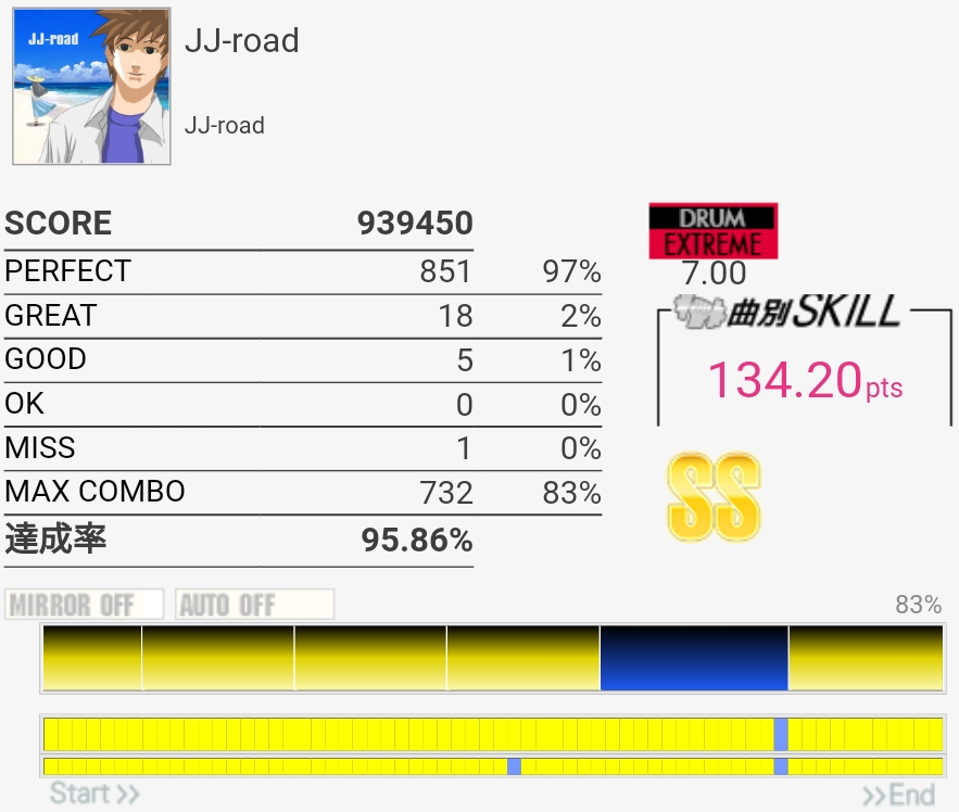 CYまともになったからこの曲叩けるようにしないとな!集中力切れててなんでもないところでミスが多かった。