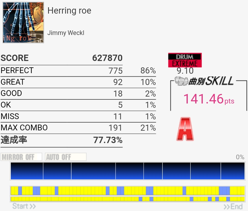 何回やっても叩き方わからん譜面。今日は左手ゴリ押しを試みたけどダメだった。
