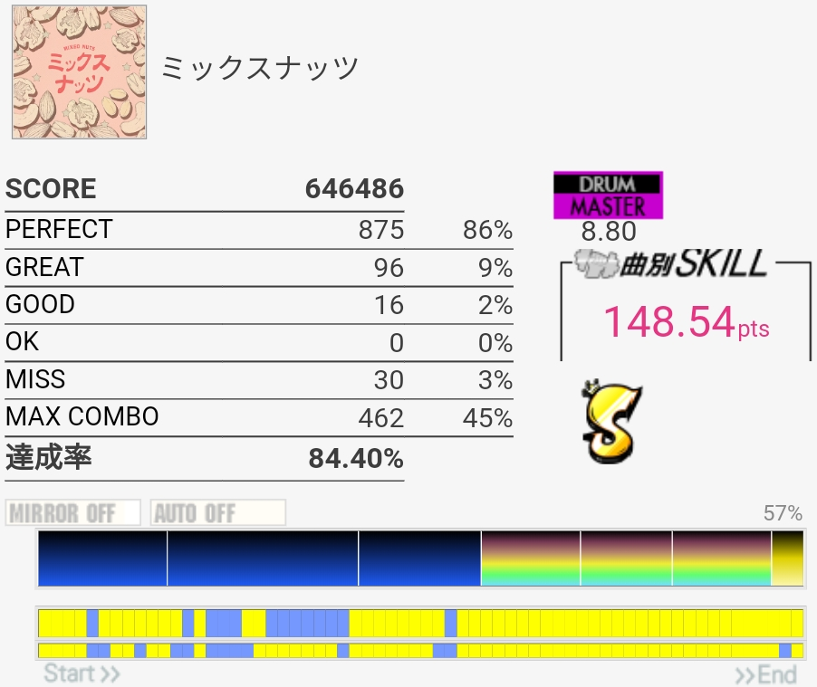 フルコン。イントロ結局覚えてなくてクロスで叩いちゃった。