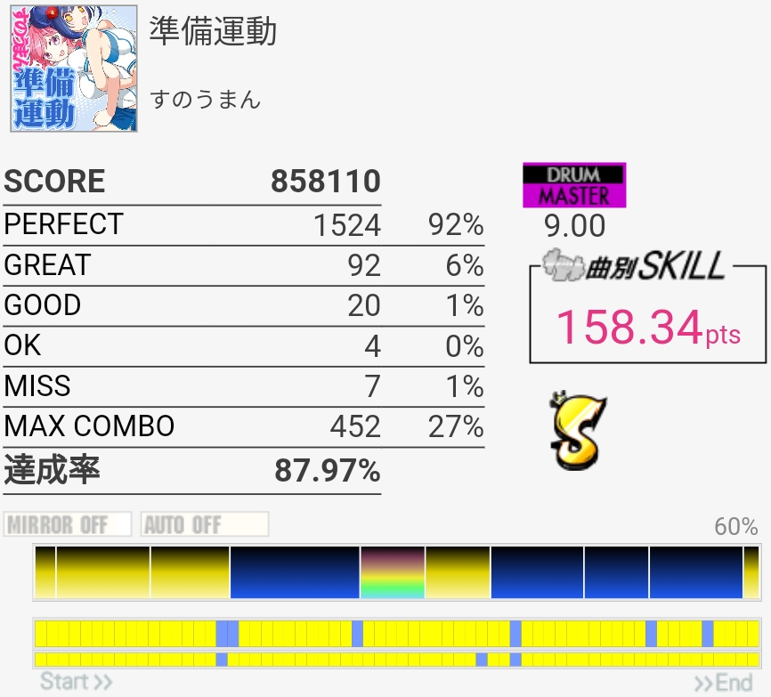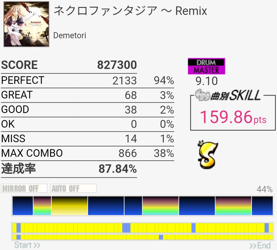 速いHT苦手すぎる!Aメロで感覚合わなくてGREAT出まくったからまあいいか。