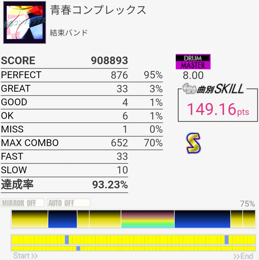 SS取得。やっぱりFT叩くの遅いのかな……パッドの反応はホームのより確実に良かったけど。