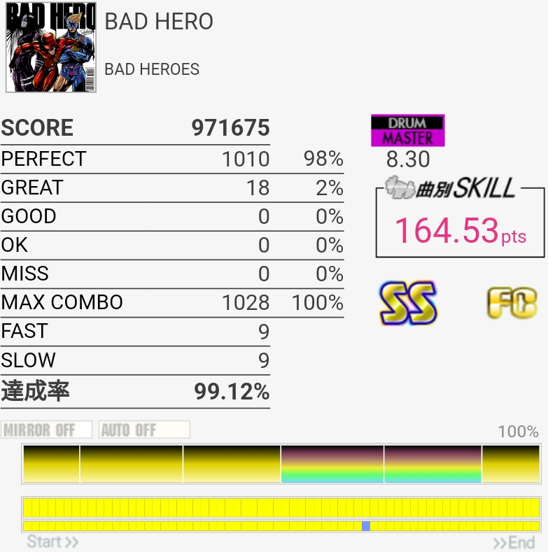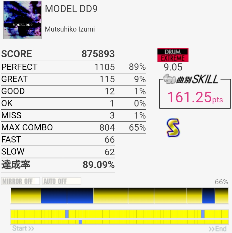 スキル8650超えた。稼働長くて稼ぎも多かったHIGH-VOLTAGEで8632だったのでそれを普通に超えられてるのは嬉しいね。今作も割と稼げる曲多いけど……。