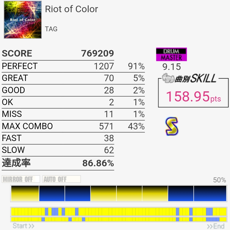 イントロだけでGREAT20個くらい出るんだけど。この曲判定がちょっと前の方にある気がする。