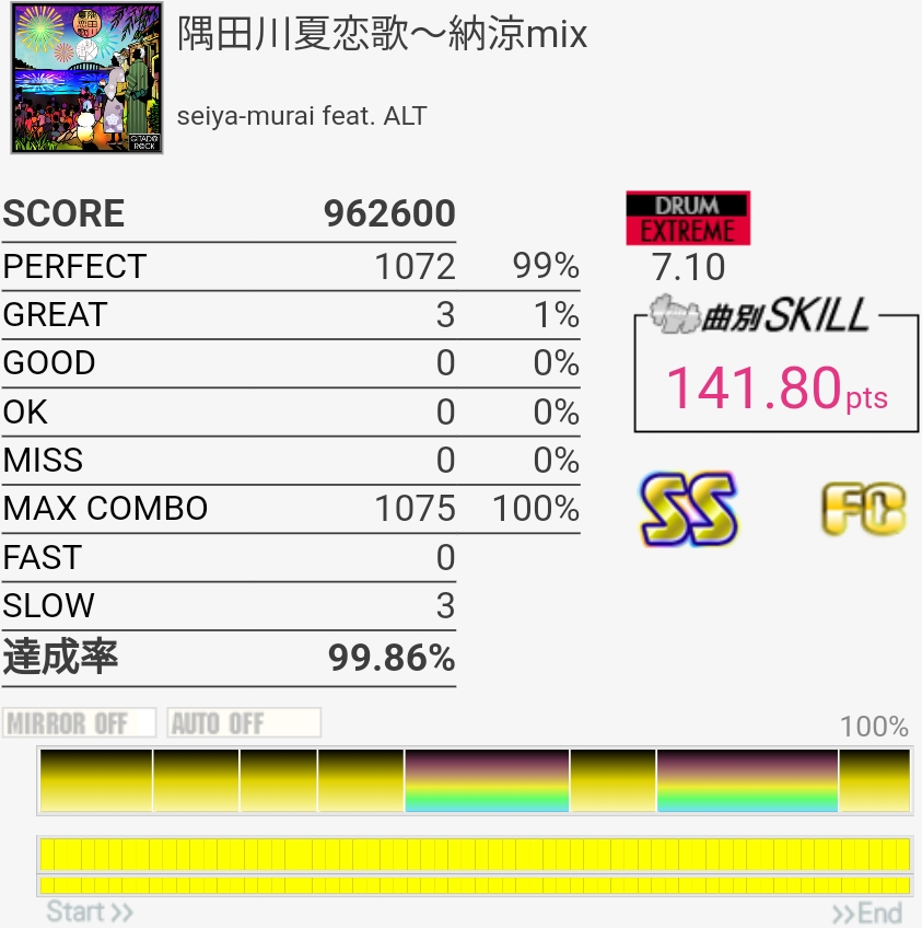 #納涼隅田川プレイ大会2024っていう企画をやっていたので参加してみたらめっちゃ上手かった。やってて気持ちいい譜面なんだけど最後激ムズすぎるよね。