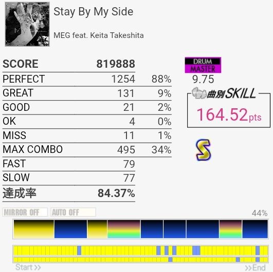 三連符両手連打苦手すぎる。そこ以外は判定合ってれば問題ないから腕を上げる意識を持とう。